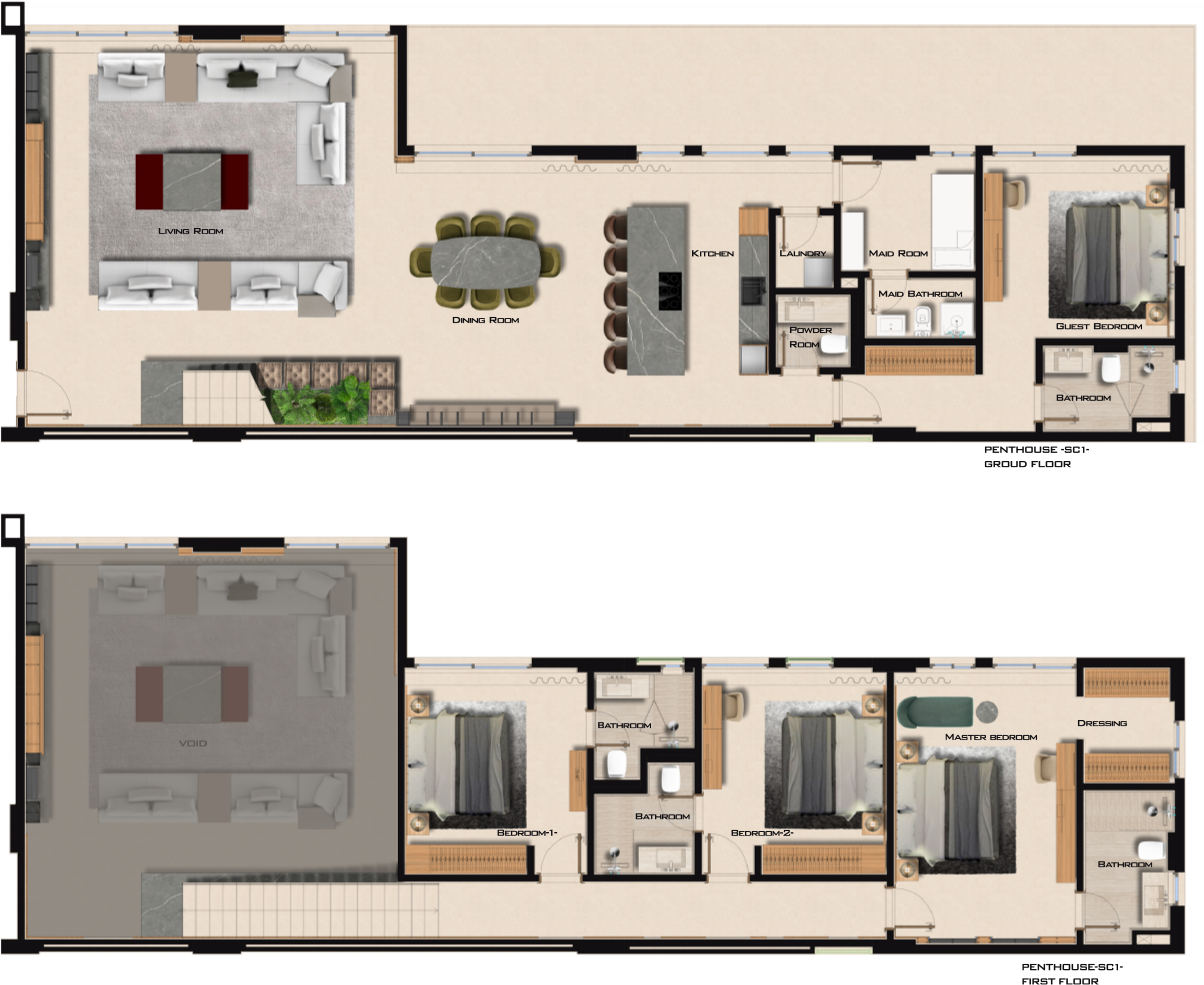 Featuring a private swimming pool on the rooftop terrace, panoramic views of Cantonments, and a full-height living area, each Penthouse is a personal retreat above the city — where privacy, comfort, and prestige converge.